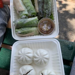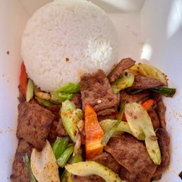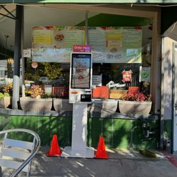 Today is my second day eating here. The food is yummy, portions are decent. Price is slightly high price, like most any restaurant or café meals these days. Outdoor seating only, which is right by a pretty busy street, which might be a little noisy for some people. However, about 100 yards away is a nice park that looks like it would be nice to take the food over to and relaxing. They served my meal today in a plastic bag with a plastic spoon and a plastic fork. I would've preferred if they asked me first, so that I would've only grabbed one utensil , and went without the plastic bag, just to avoid adding more waste. I wish there was a way to see what the various artificial meat items on the menu are made of. I recommend the place :)